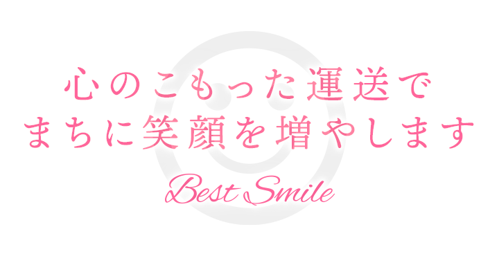 「ベストスマイル」という社名にもあるとおり、最高の笑顔とともにお荷物を運送するよう心がけています。今後とも弊社をご愛顧賜りますようお願い申し上げます。
